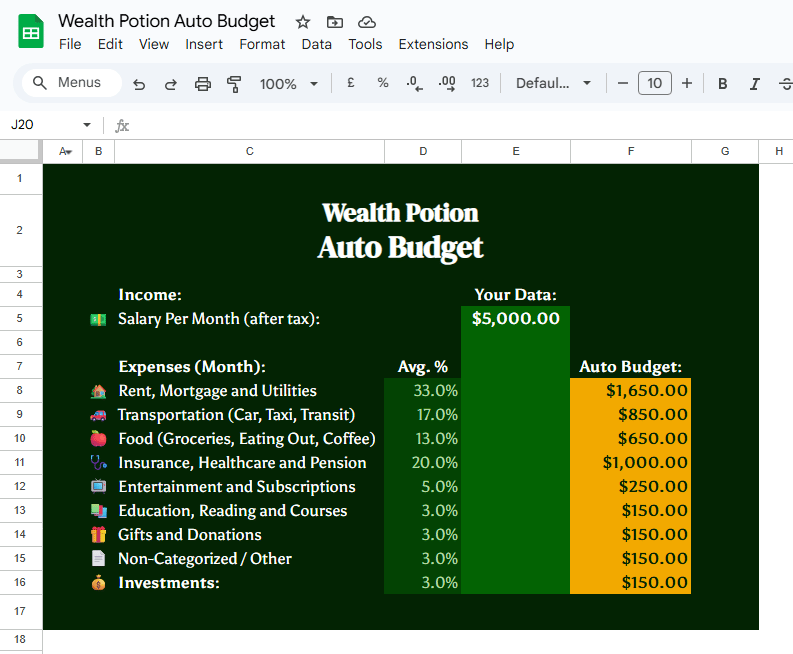 So I built the Wealth Potion Auto-Budget: