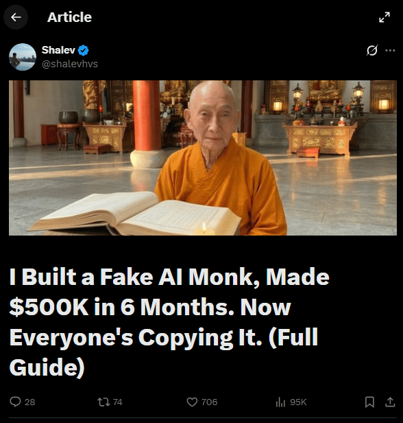 The mid-curve take on X right now seems to be that content creators are screwed because AI influencers are going to replace the humans.