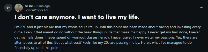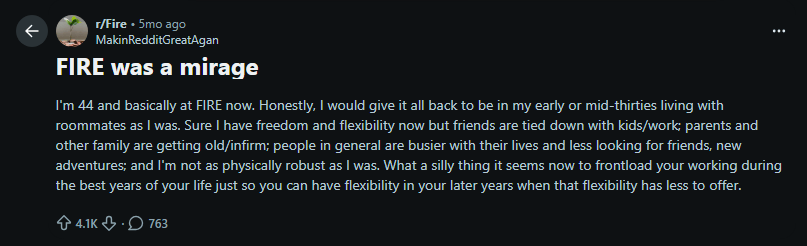 And many people achieve FIRE and realize that they had taken it too far. That their main purpose in life was achieving FIRE. That money became an idol that they worshipped.